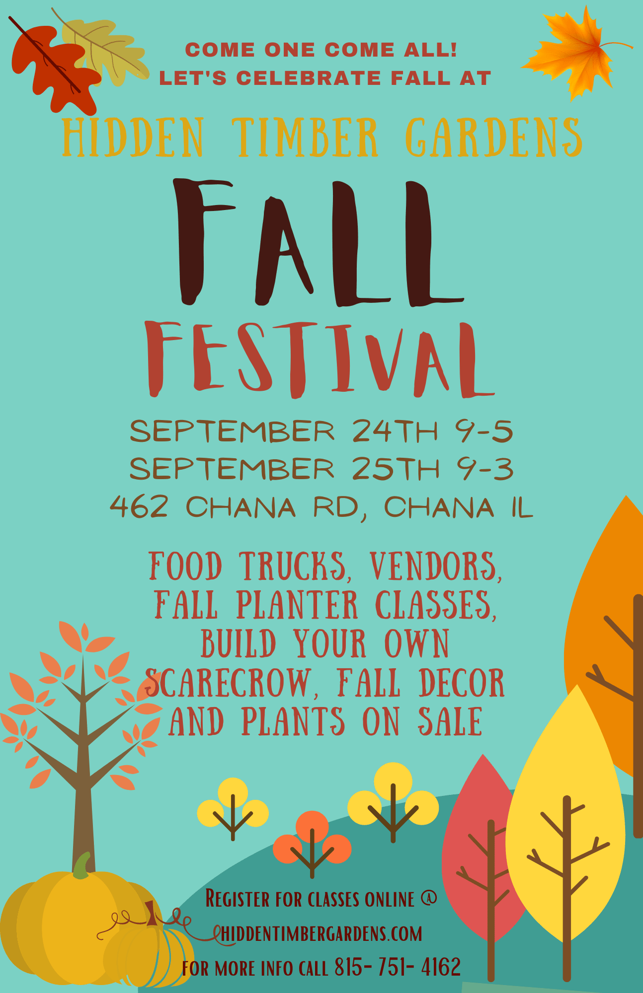 Register for one of our Fall Container workshops at hiddentimbergardens.com/events. The outdoor market vendors will be showcasing their awesome homegrown, or handmade products. Saturday & Sunday, Chana Tap will be serving Italian Beef, Walking Tacos, Chips & Beverages, lunch from 11 to 2 and Hazel's Cafe will have breakfast and lunch fare all day.