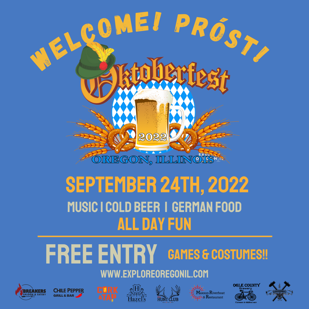 Come out to Oregon on Saturday, September 24th for our 2nd Annual Oktoberfest Party! Stop out for authentic German fare, great beer, live music, games & prizes. Costumes are encouraged... Prost!