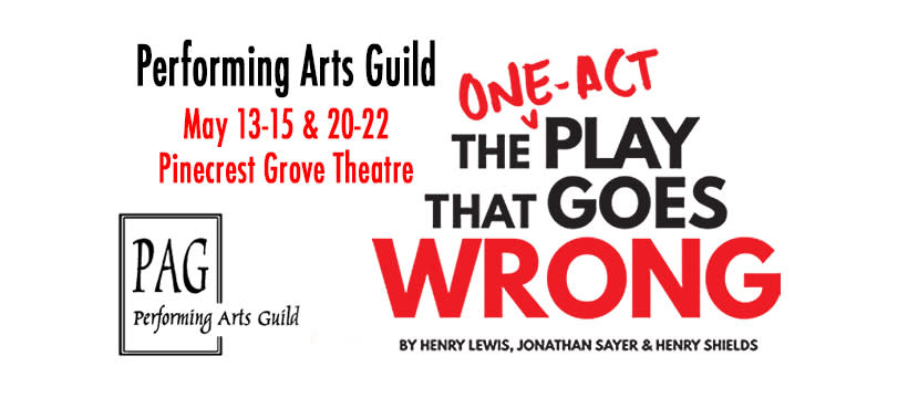 WE’RE BACK!! The Performing Arts Guild is excited to announce the spring performance of the award winning comedy The One-Act Play That Goes Wrong.