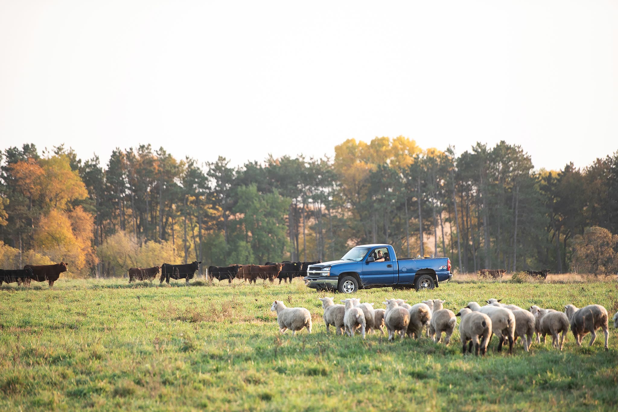 Our grass-fed pasture system is ideal for the animals and the environment. Our animals live naturally on our pastures, grazing the forages growing in our fields. In the summer, we harvest the excess growth and feed it as hay in the winter. The animal wastes return to the land and become nutrients for the next grass cycle.